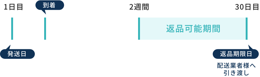 いつでもご返品いただけます。 返品の際は、期間中に配送業者様へお引き渡し下さい。